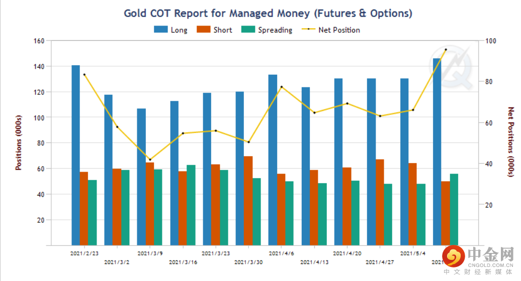 根据上周公布的美国COT持仓数据,基金经理在包含期权和期货的黄金投机持仓中,多头持仓显著增加,较上周大幅上涨12%。净多头头寸达到9558500盎司。