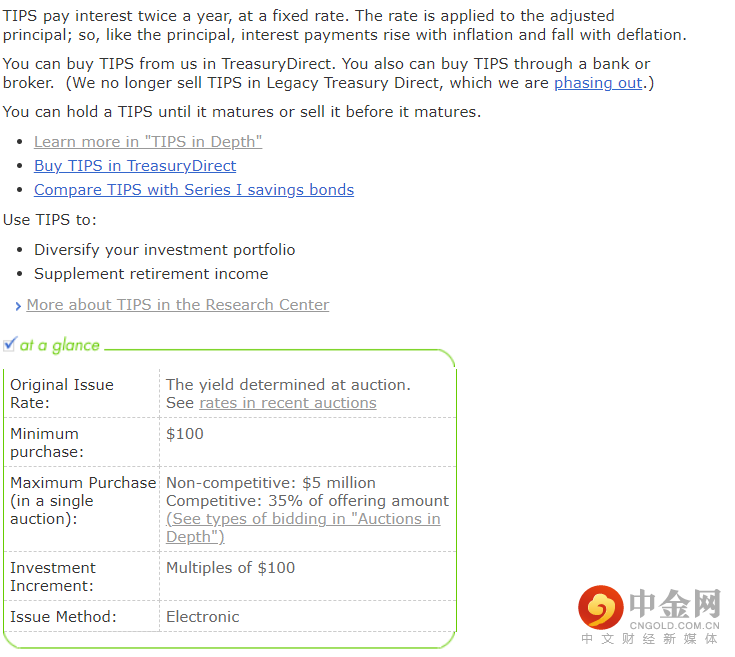 美国国债通胀保护证券(TIPS)是美国政府发行的债券,提供通胀保护,外加适度的利息支付。美国财政部都会根据消费者价格指数 (CPI) 调整 TIPS 的面值,也会根据通胀水平调整每年的利息支付水平。可以说TIPS是市场上广泛作为通胀预期的一个标的物。
