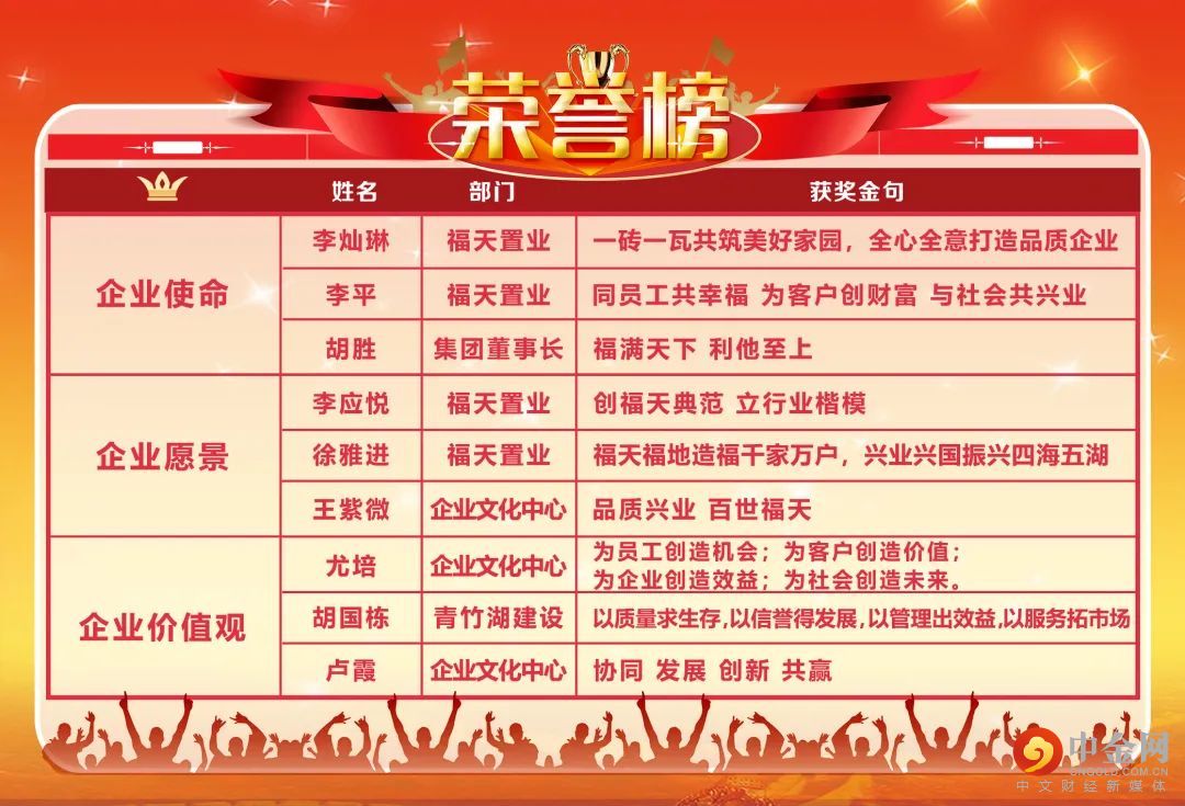在各公司、各部门踊跃投稿的600多条企业文化金句中,集团成立专业评审小组,再经过官方公众号公平公正的投票,最终在甄选出的企业使命、企业愿景、企业价值观优秀“金句”作品各15条中,各评选出3条“金句”分别作为一等奖、二等奖、三等奖。