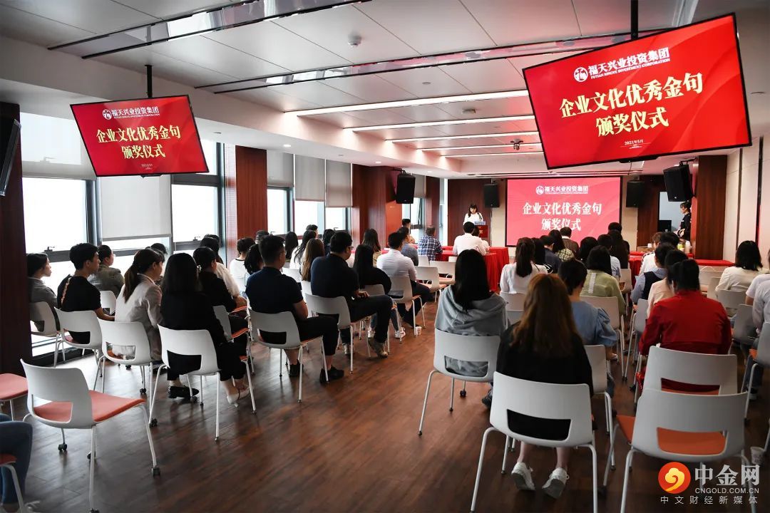 缤纷夏日,激情似火。5月17日下午3点,福天兴业集团在综合楼十二楼会议室举行了“企业文化金句颁奖仪式”活动。本次活动是针对集团近期举办的“金句有奖评选”征集活动的票选结果颁奖,目的就是充分激发大家的积极性和创造性,为统一集团思想、形成统一企业文化夯实基础,为开启福天品牌新篇章做好充分准备。