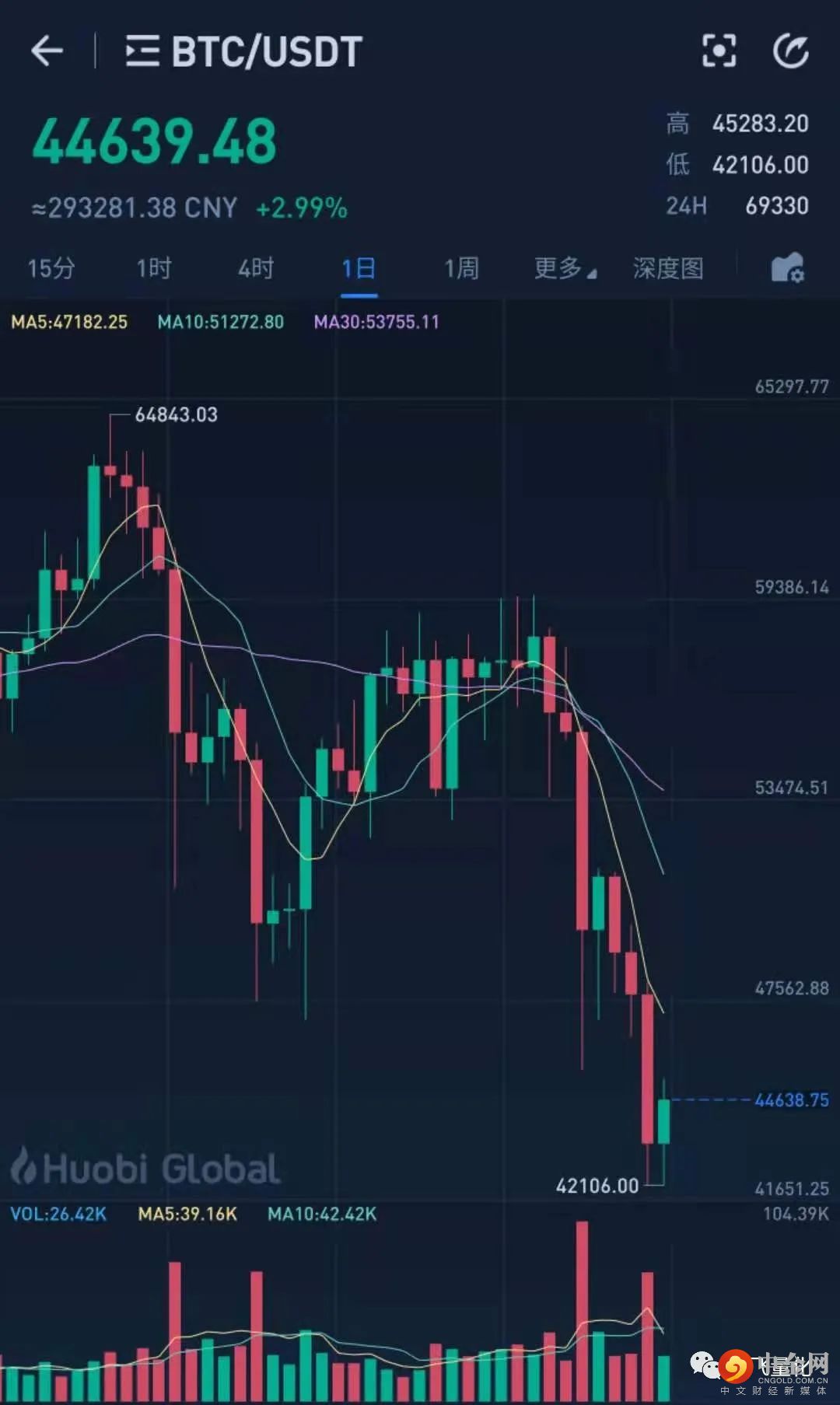 最近比特币价格:-30%(64000美金跌至42000美金)