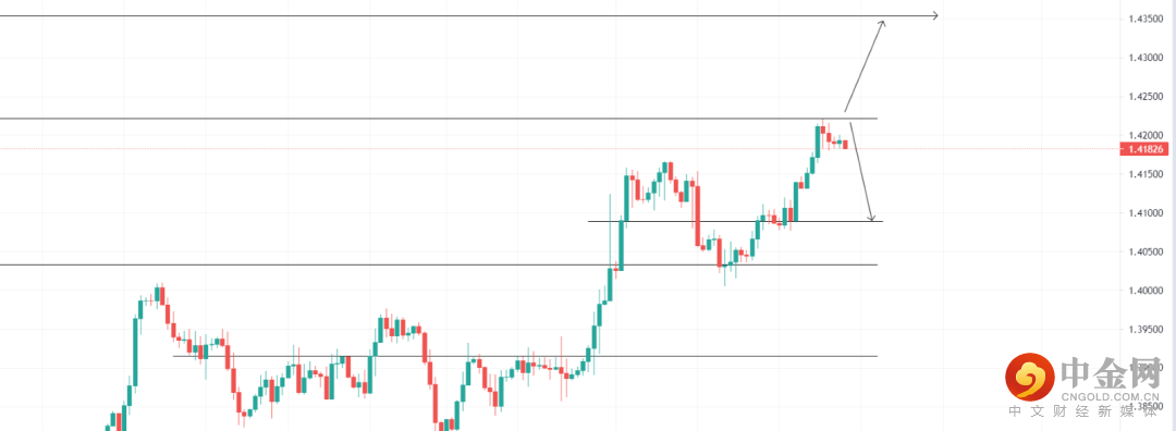 GBPUSD:美元指数下滑,英镑持续上升,关注1.42217的压力位置,4小时突破收多即可看多至压力位1.43543,止损1.41976;关注1.42217压力位,4小时受阻收空即可看空至1.40890支撑位,止损1.42405