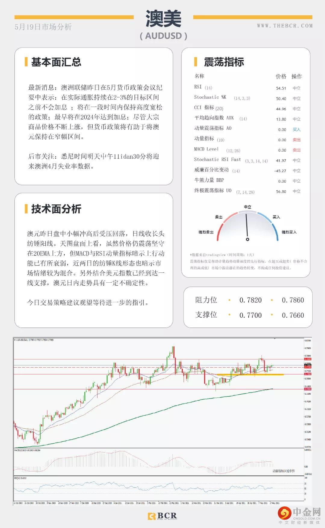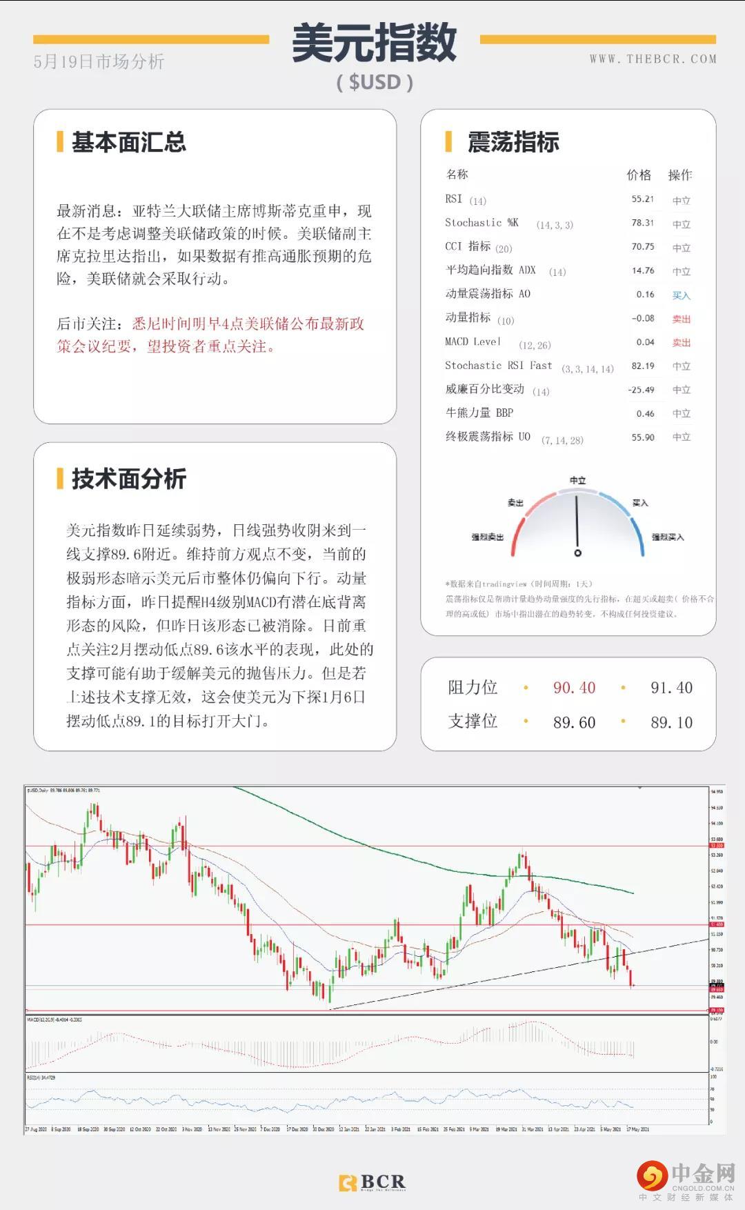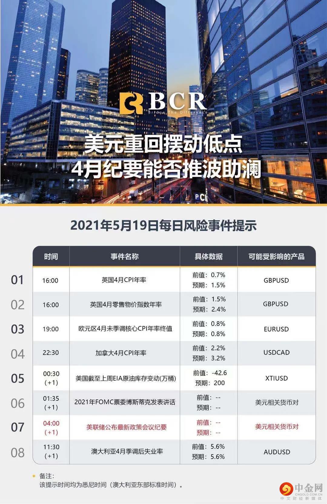 【BCR今日市场分析2021.5.19】美元重回摆动低点 4月纪要能否推波助澜