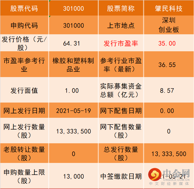 【天天新股】今日申购4新股