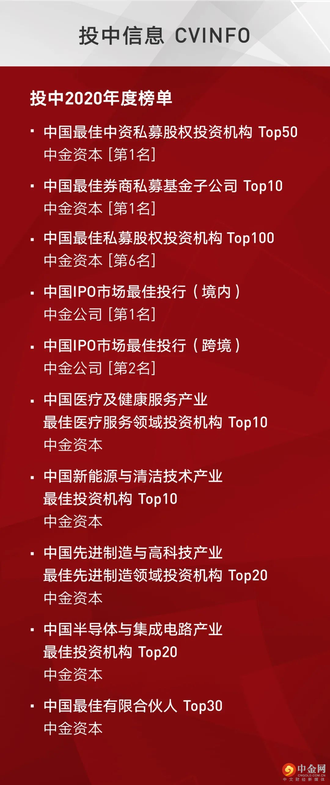 近日,投中信息作为独立第三方机构连续15年发布了中国创业投资机构暨私募股权投资系列榜单——投中2020年度榜单,中金公司及中金资本凭借突出的专业实力,从激烈的评选中脱颖而出取得了优异成绩,再次摘取了“中国最佳中资私募股权投资机构” “中国IPO市场最佳投行”等多个重量级奖项桂冠。