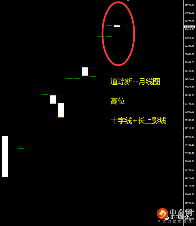 再看道琼斯的月线图: