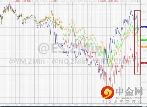 此言一出,美股跌幅重新迅速扩大,道指跌超370点或超1%,纳指跌近120点或0.9%,标普500指数跌1%。而在纪要发布前,美股已经收复日内近半跌幅,道指曾跌230点,纳指跌0.45%,标普大盘跌0.55%。美股盘初,道指一度深跌586点,纳指跌1.7%,标普11大板块齐跌。