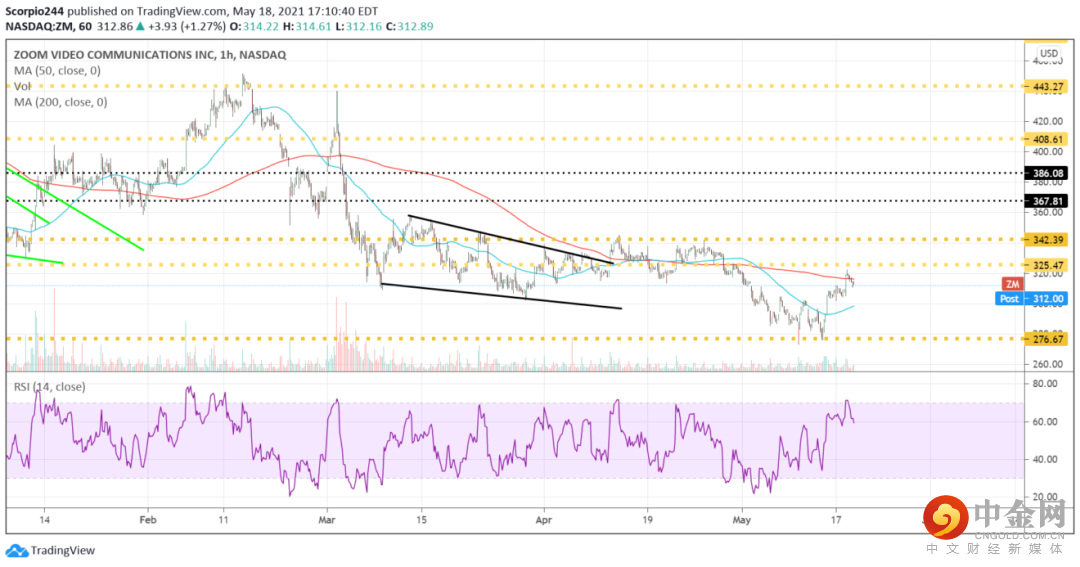 Zoom的股价重返300美元上方。唯一的问题是,Zoom股票看起来将面对强劲的阻力线,该阻力线在325美元附近。