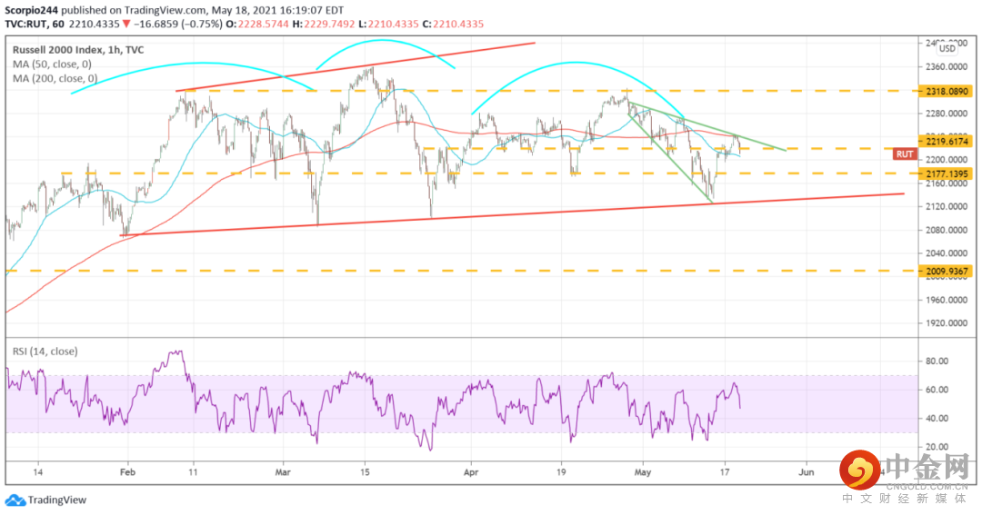 罗素2000指数基金看起来很脆弱不堪,扩大的楔形形态在最糟糕的时刻失效。对于小盘股指数而言,这并不是一个好信号。