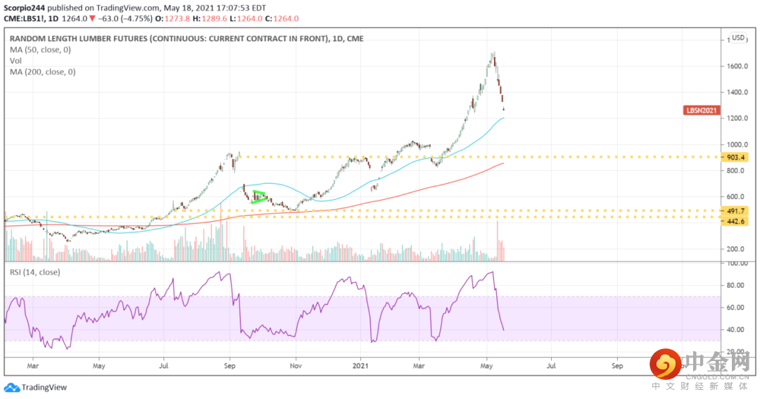 毫无疑问木材期货市场就是这样一个不大的市场,若木材期货跌破50日移动均线,则很可能继续下滑。有人想离开这个市场,并且不惜代价。