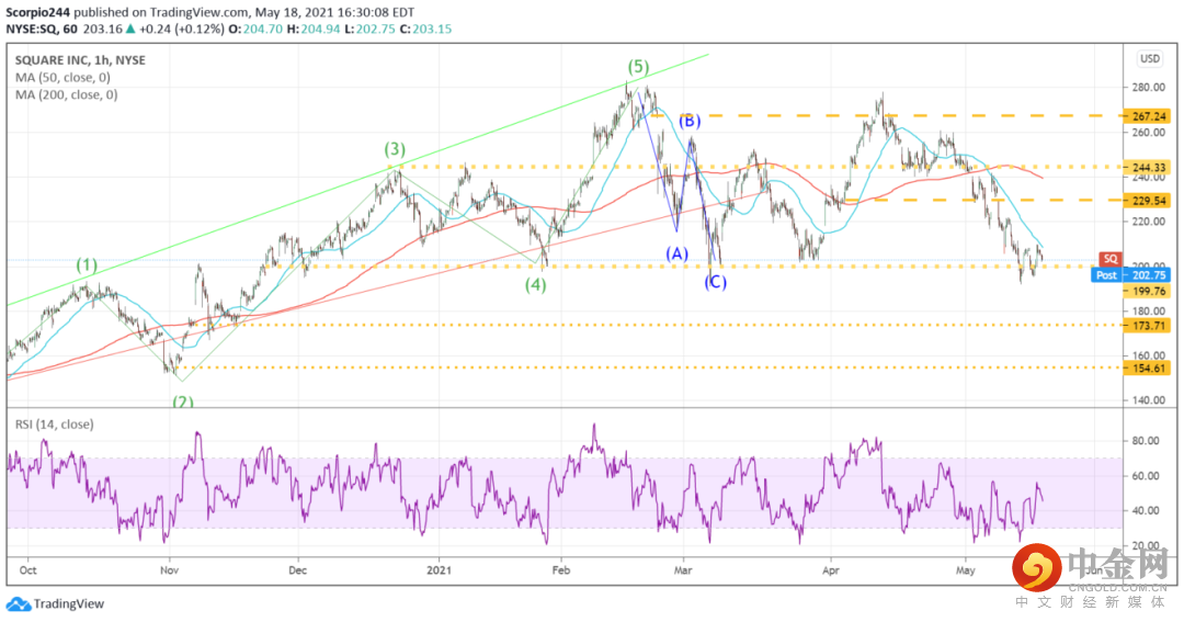 Square公司的股价看起来仍在崩溃中,该公司的股价一度上涨逾3%,不过在收盘时基本持平。也许这是崩跌过程中的暂停键,不过若Square公司的股价跌破200美元的支撑线,就应该会继续跌向173美元。