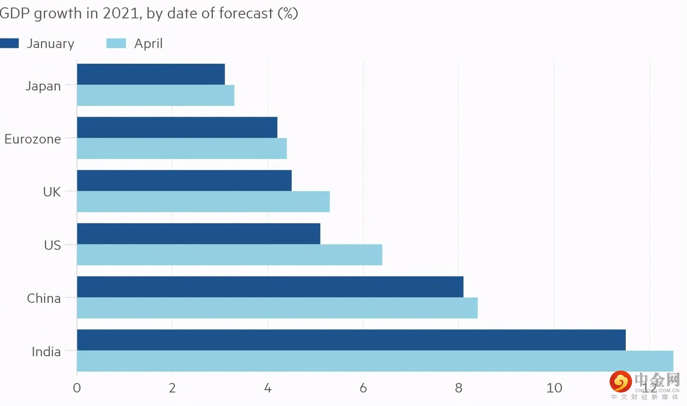 (IMF关于主要经济体2021年GDP的预期增长率)
