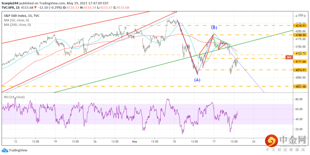 标普500指数收盘在4115点附近。我认为期权到期日与今天的反弹有很大的关系。4100点一线是目前的gamma水平线,标普500指数从来没有跌到足以摆脱4100点牵引力的程度。