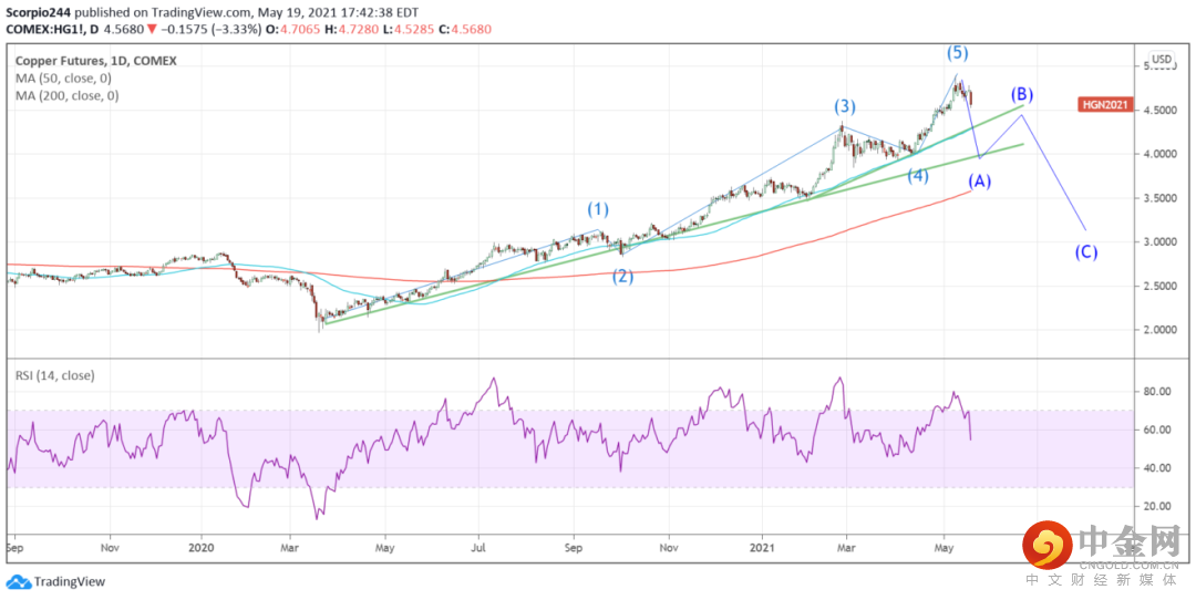我认为铜的补涨已经结束,在接下来的几个月时间里我们可能看到一个相当大的调整。目前而言,第一个止损位可能回落至3.95美元。