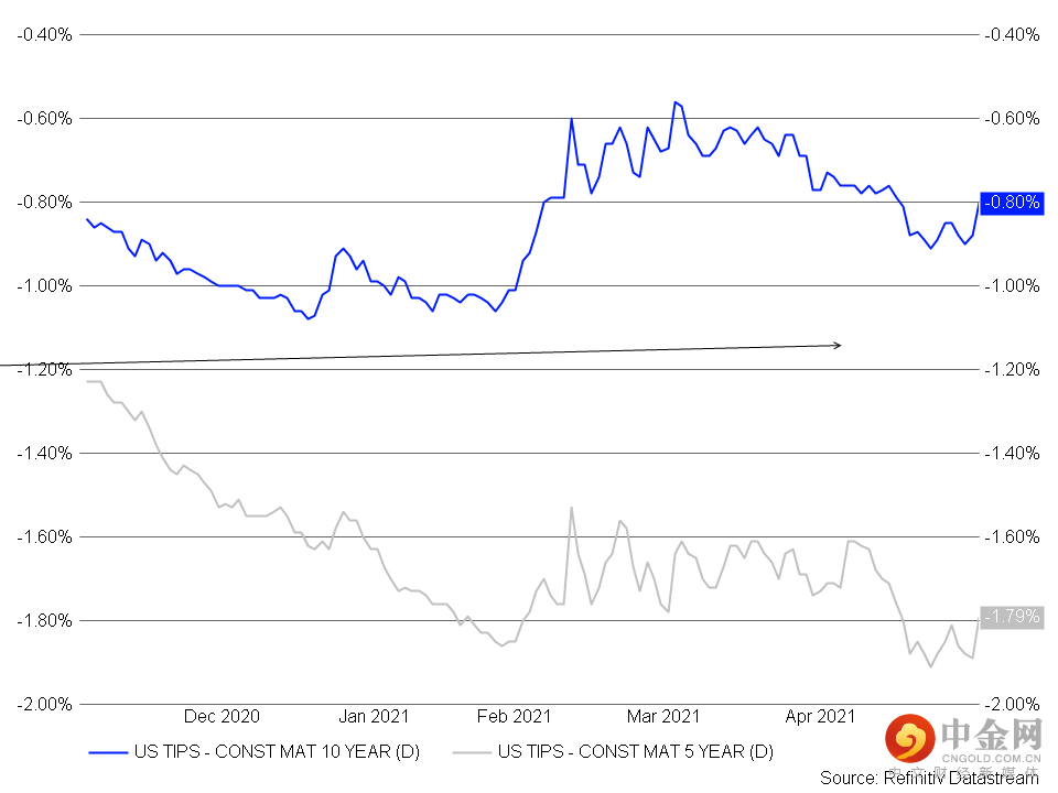 10年期通货膨胀保值债券可能从目前的负80基点一路升至0。