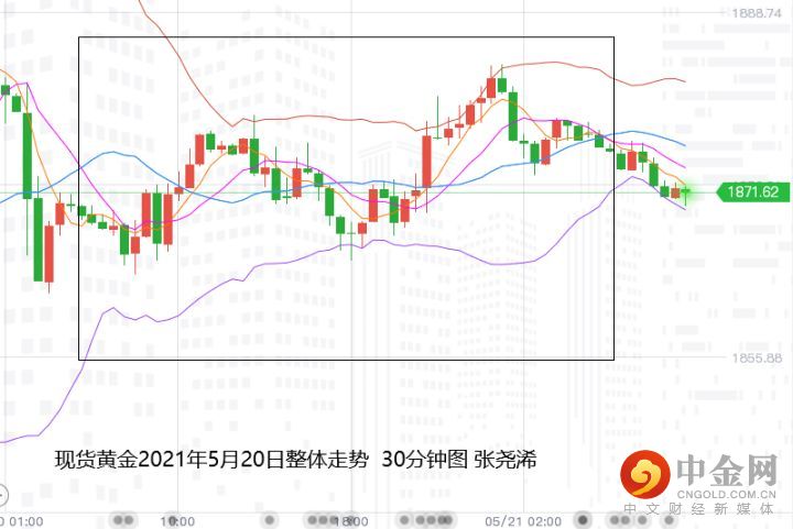 展望今日周五(5月21日):国际黄金再度开盘先行表现承压走低,美元指数与美债收益率昨日的大幅走低收阴未对金价产生较强支撑,目前再度维持在低位也未再对金价产生利好反弹,暗示黄金市场偏向短期触顶的回落行情。