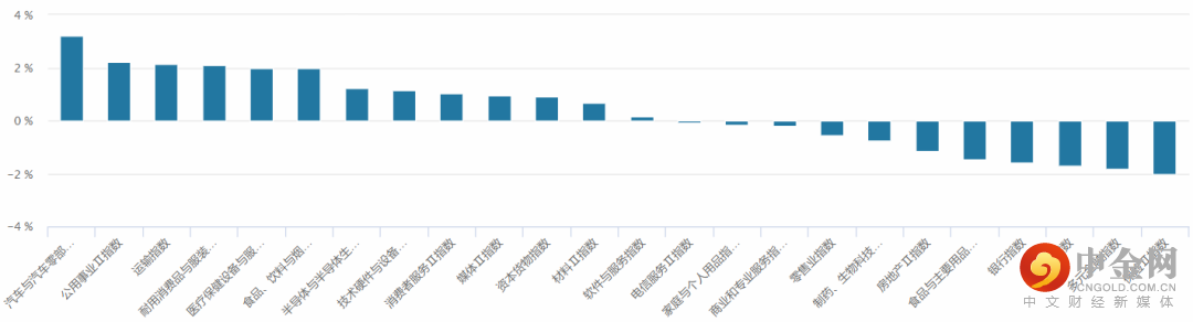 从行业板块表现来看,汽车、医疗保健、食品饮料表现靠前,而保险、多元金融等表现相对靠后。(见图2)