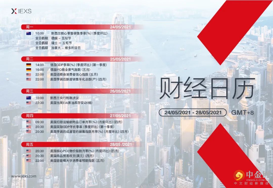 以下是5/24 - 5/28(GMT+8北京时间)重要经济事件以及相关货币提醒,由于行情结果不稳定,届时市场可能会面临大波动,导致市场缺口。IEXS证券提醒您,在管理风险时,请同时考虑其他任何重大行情新闻公告。