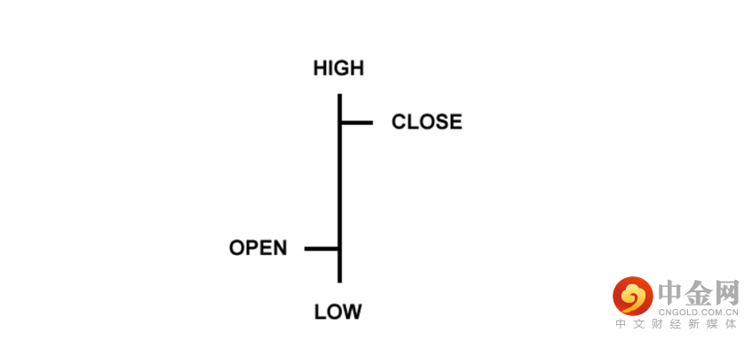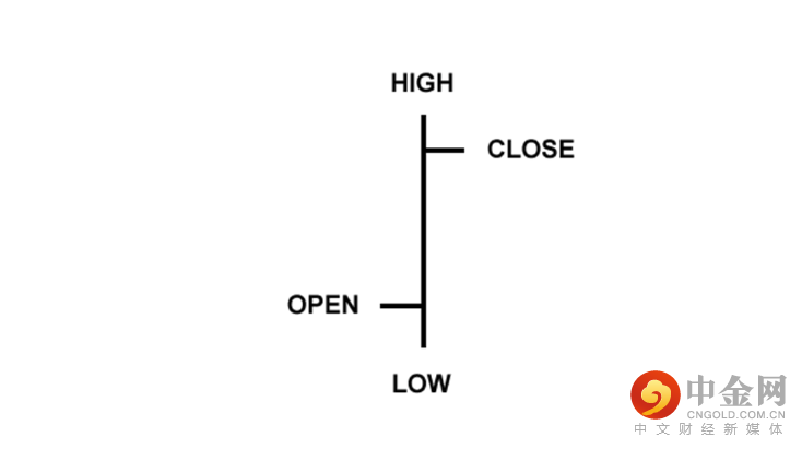 条形图稍微复杂一些。它显示了开盘价和收盘价,以及高点和低点。