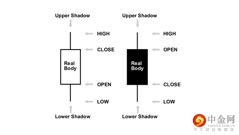 如果收盘价高于开盘价,则中间的区块将为“白色”或空心或未填充。
