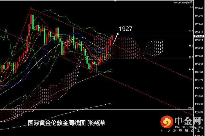 技术上:周线级别,金价再度走高并收复周内的跌势,多头力量再度转强,KDJ及MACD看涨信号继续维持明显强势,表现稳于看涨云层之上,后市就要等待转换线突破基准线之上,将再度加大看涨预期,并直接迈向2000关口或更高,所以在此之前仍需注意短期见顶回落风险。下方依然重点关注5周均线支撑,上方依然关注1927美元目标位。