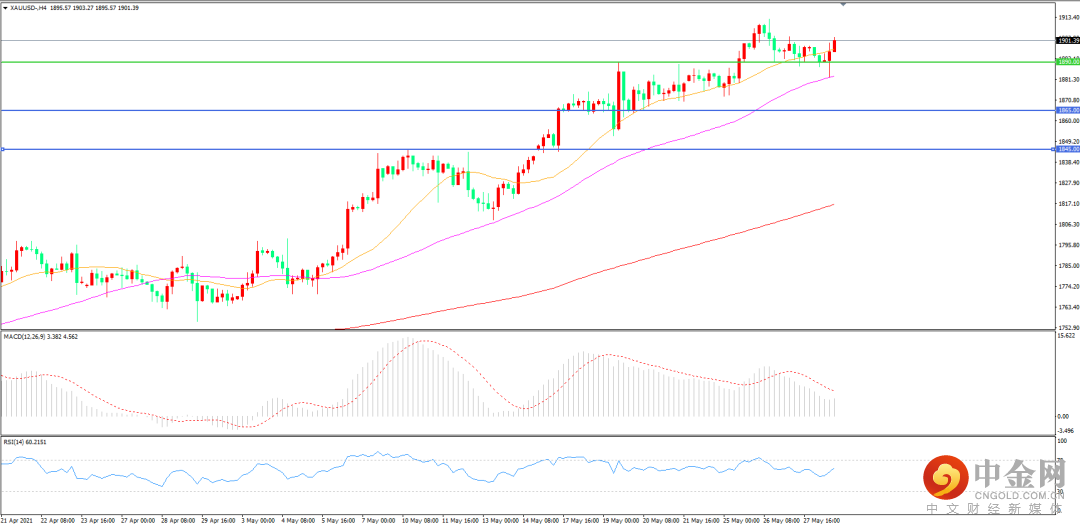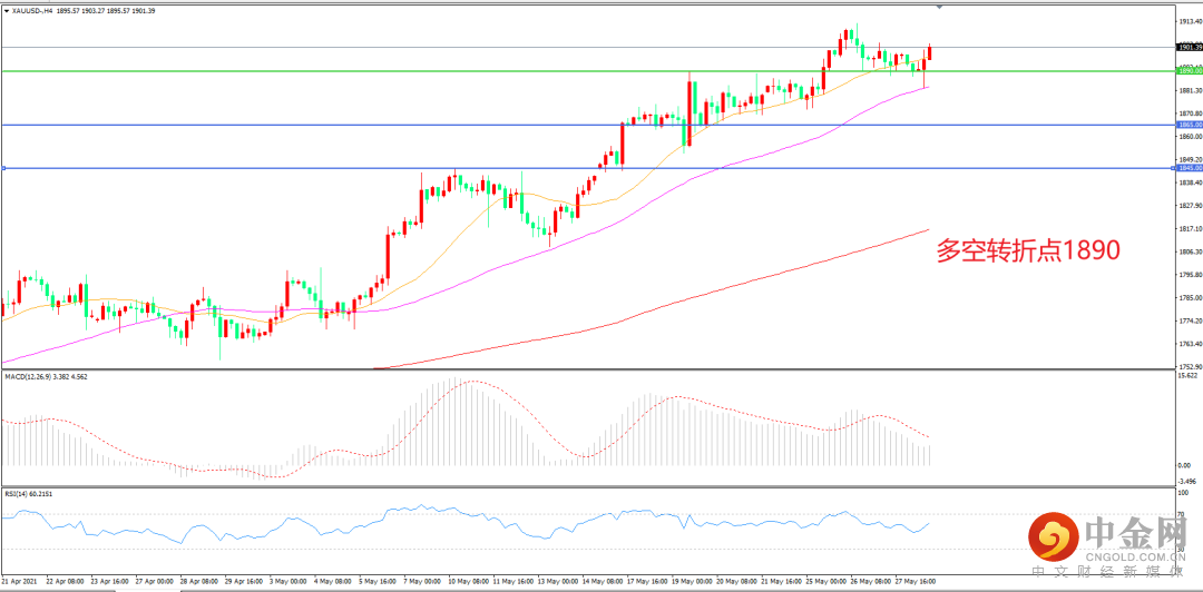 在数据公布前,黄金和汇市提前异动。美元指数开始拉升,现货黄金失守1890美元关口,美国10年期国债短线波动不大。数据公布后1小时后,现货黄金重回1900美元/盎司上方,较日内低位回升近20美元,在此期间金价屡次获得大单助攻: