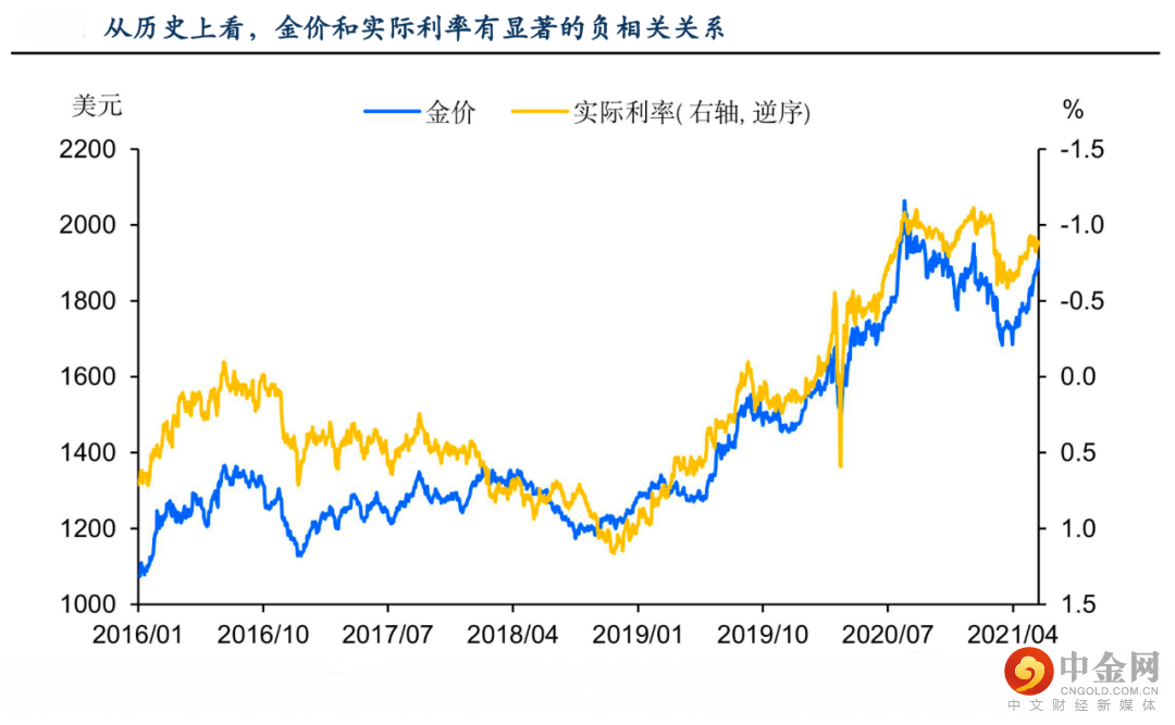 这也意味着美国实际利率有可能进一步回落,同样利好金价。长期美债的实际收益率反映了持有黄金的机会成本,从历史来看,两者均有显著的负相关关系。