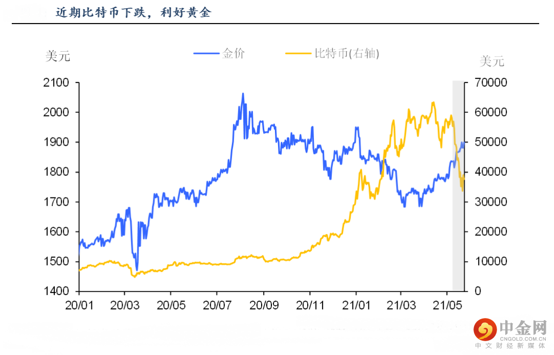 过剩的流动性下,资金寻求可以替代美元的产品,黄金“准货币”的地位凸显。监管方面的打压造成比特币的波动,鉴于比特币和黄金的负相关关系,后者再次成为有吸引力、稳定的避险资产