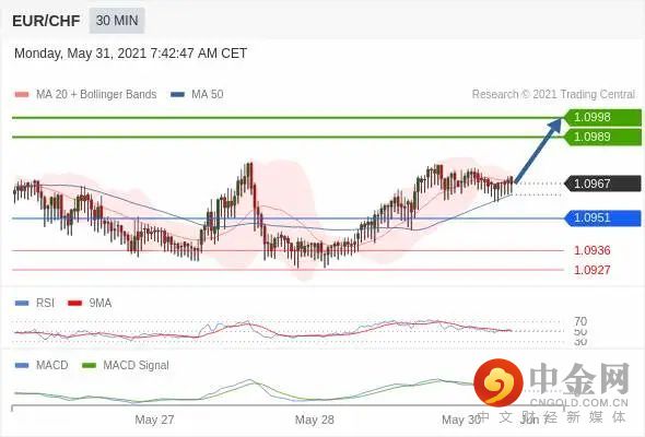 向下突破1.0951,将分别看涨1.0936和1.0927。