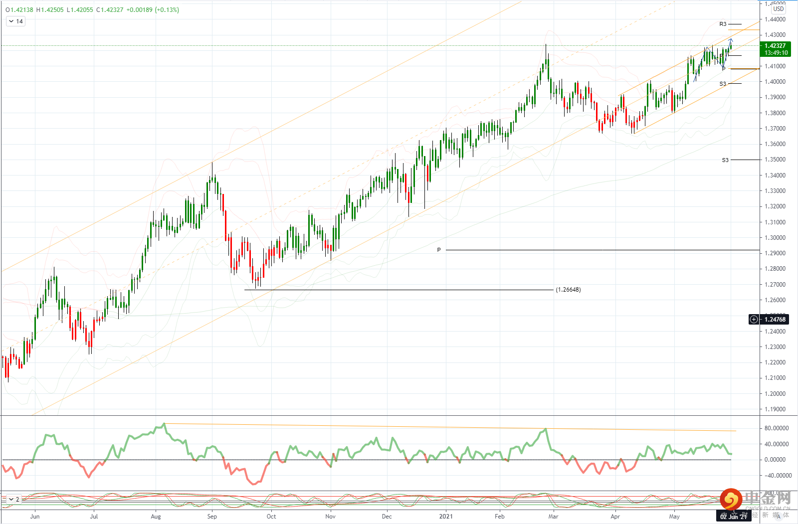 GBPUSD 日内偏差:看涨高于 1.4150 看跌低于