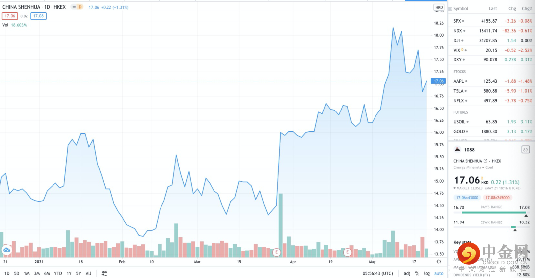 今年以来股价大涨的中国神华(1088.HK)也同时受益于转型战略和煤炭价格攀升。近期花旗发布研究报告,维持中国神华“买入”评级,目标价上调至19.9港元。该行表示,今年内地煤炭价格将保持弹性,在非正式的进口禁令下,需求增长超过供应。同时,将集团今年的盈利预测提高19%,以反映煤炭平均售价上升及销量更高。