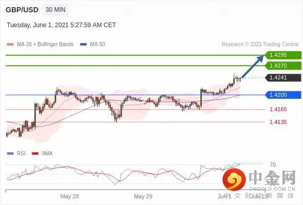 多头头寸高于1.4200,目标在1.4270和1.4295延伸。