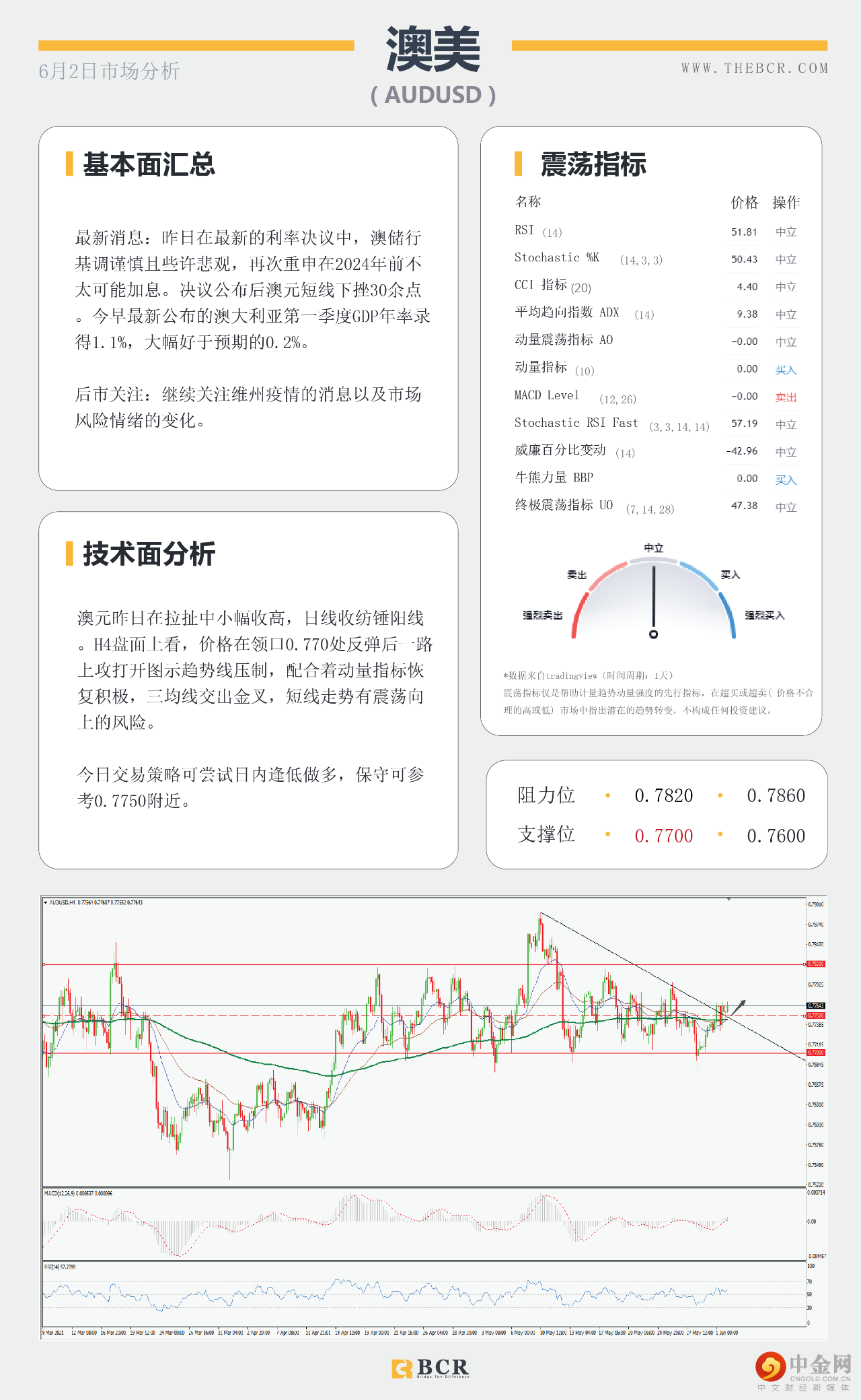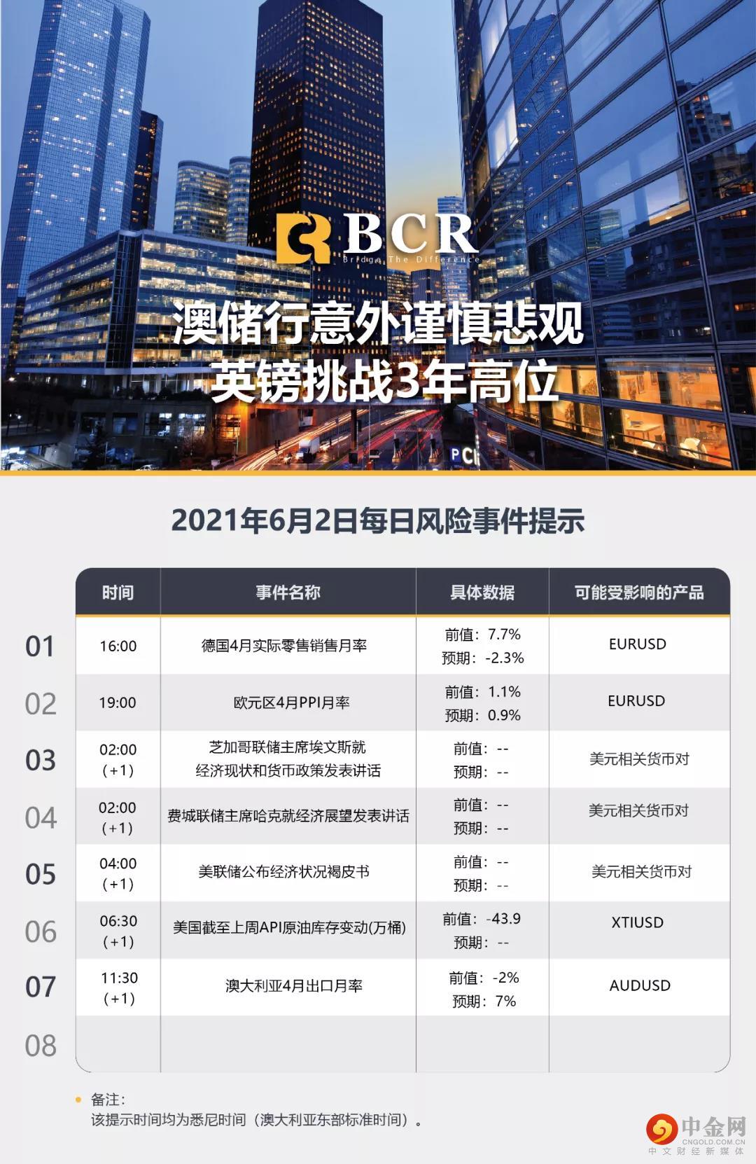 【百汇BCR今日市场分析2021.6.2】澳储行意外谨慎悲观 英镑挑战3年高位