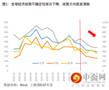 尽管新供给冲击不可避免造成了宏观经济环境更趋复杂和劣化的负面影响,但从另一个角度看,宏观经济运行的主线逻辑反而更加清晰,进而使得在不确定性中把握确定性变得更具可能性和可行性。对于全球宏观政策制定者和执行者而言,新供给冲击既带来了贯彻“传统智慧”的两难,也产生了破局意义的倒逼效应,敦促全球宏观政策跳出菲利普斯曲线的束缚,从一个更高的层次和更广的维度去应对百年未有之大变局的巨大挑战。我们注意到,虽然新冠疫情之后的全球经济金融异动使得全球政策不确定性显著高于正常时期,但在新供给冲击确证形成的同时,全球政策不确定性也正在显著下降。根据Wind数据,2021年4月,经过购买力平价折算的全球经济政策不确定性指数比1997年以来的历史平均水平高出67%,但已较2020年5月的阶段性高点下降了52%。各主要经济体也呈现出政策不确定性边际下降的类似趋势,2021年4月,美国、欧洲和中国的经济政策不确定性指数比1997年以来的历史平均水平依旧高出16%、24%和167%,但已较2020年5月的阶段性高点分别下降了63%、36%和48%。