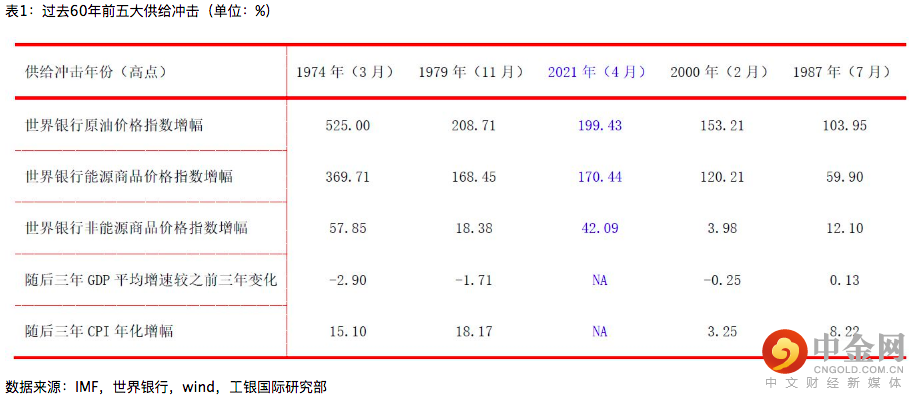 历史经验表明,供给冲击下的大宗商品价格上涨总有短期极限,但供给冲击的长期影响会深刻改变宏观经济演化的路径。我们对1960年以来的全球经济历史进行了一个基于供给侧视角的简单回顾和现实对比,结果表明,新冠疫情引致的新供给冲击已经构成了过去60年里第三大供给冲击。截至2021年4月,世界银行原油价格指数较2020年4月的阶段低点上涨199%,世界银行能源商品价格指数和非能源商品价格指数分别较阶段低点上涨170%和42%。从冲击程度看,2021年的新供给冲击,整体效应弱于历史上最有名的两次供给冲击,即1974年和1979年的供给冲击,但强于最近的两次供给冲击,即1987年和2000年的供给冲击。