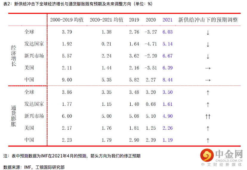 我们认为,2021年新冠疫情引致的新供给冲击将对全球经济产生拖累增长、推升通胀的全局效应,并将加剧阵营、区域和国别的结构性分化。一方面,新供给冲击将降低经济信心、压制消费意愿、增加投资困难,并抑制全要素生产率的长期提升,进而削弱经济复苏的内生动能。2021年上半年,全球经济实现了疫情初步缓解后的强势反弹,但从疫情前状态、惯性增长水平和潜在增长水平三个维度进行对比,全球经济尚未做到“恢复正常”。根据IMF2021年4月的预测,2021年全球经济有望实现6%的经济增长,我们认为,新供给冲击之下,全球经济增长路径会于2021年下半年开始向下修正,疫情防控成效将成为经济复苏的晴雨表与分水岭,资源出口型的新兴市场国家虽然一定程度上受益于大宗商品价格上涨,但生产链条在疫情下的深度受创将对其起到相对更大的增长拖累效应。对于全球经济复苏的两大驱动引擎中美而言,由于其产业链相对完备、疫情防控成效较好、且政策应对更为有效,其经济增长的韧性将进一步显现。另一方面,新供给冲击将依循从生产到消费、从外部到内部、从短期到长期的影响路径,全面推升全球物价总水平,但考虑到产出缺口依旧广泛存在,长期通胀尚不会全然失控,而从结构看,新兴市场通胀压力要普遍高于发达国家。2021年上半年,全球通胀压力已经在生产端显现,但由于产业间传导存在一定时滞、工资调整存在较大粘性、猪肉价格下降部分对冲总价格上升效应、且疫情后服务业重启相对缓慢,PPI向CPI的通胀压力传导尚未完成。我们认为,新供给冲击的全面通胀压力传导既不会中断、也不会缺席,2021年下半年全球通胀路径势必将要全面上修。而从绝对水平看,通胀程度取决于通胀预期、成本上升和产出缺口三个因素的综合效应,前两个因素是推动通胀中枢水平上升的关键,而产出缺口的长期存在则将起到内生抑制作用。综合来看,通胀压力上升是不争的事实和趋势,但恶性通胀的形成尚不具备条件,从政策层面、市场层面和企业层面应对通胀,势必需要防微杜渐、曲突徙薪,但也不宜杯弓蛇影、草木皆兵。