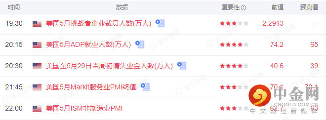 基本面上,市场重点还是在本周四的美国5月挑战者企业裁员人数、美国5月ADP就业人数、当周初请失业金人数等和周五的非农数据,以更清晰地了解美国经济复苏状况,并揭示通胀前景。