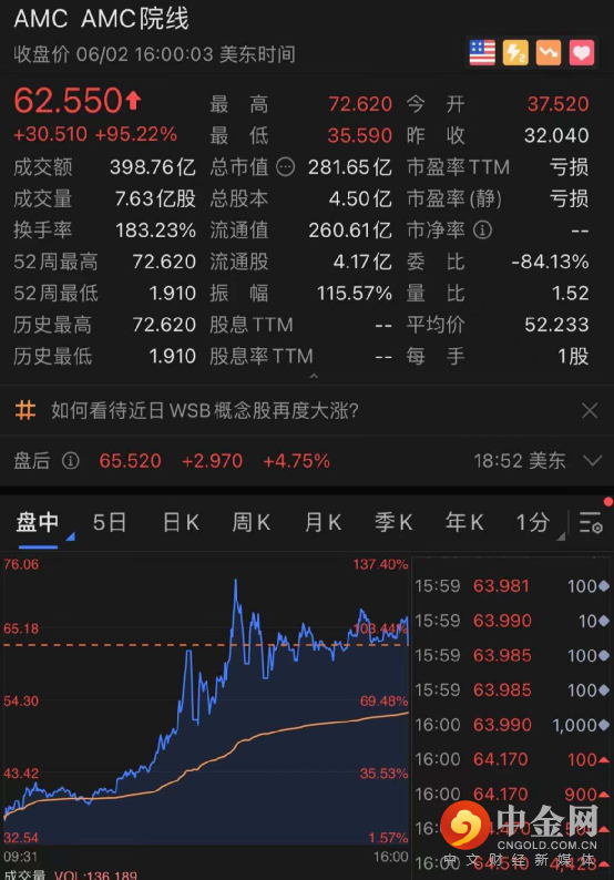 美国散户狂潮卷土重来,AMC周三猛涨95%,一只28倍大牛股在美股诞生了!