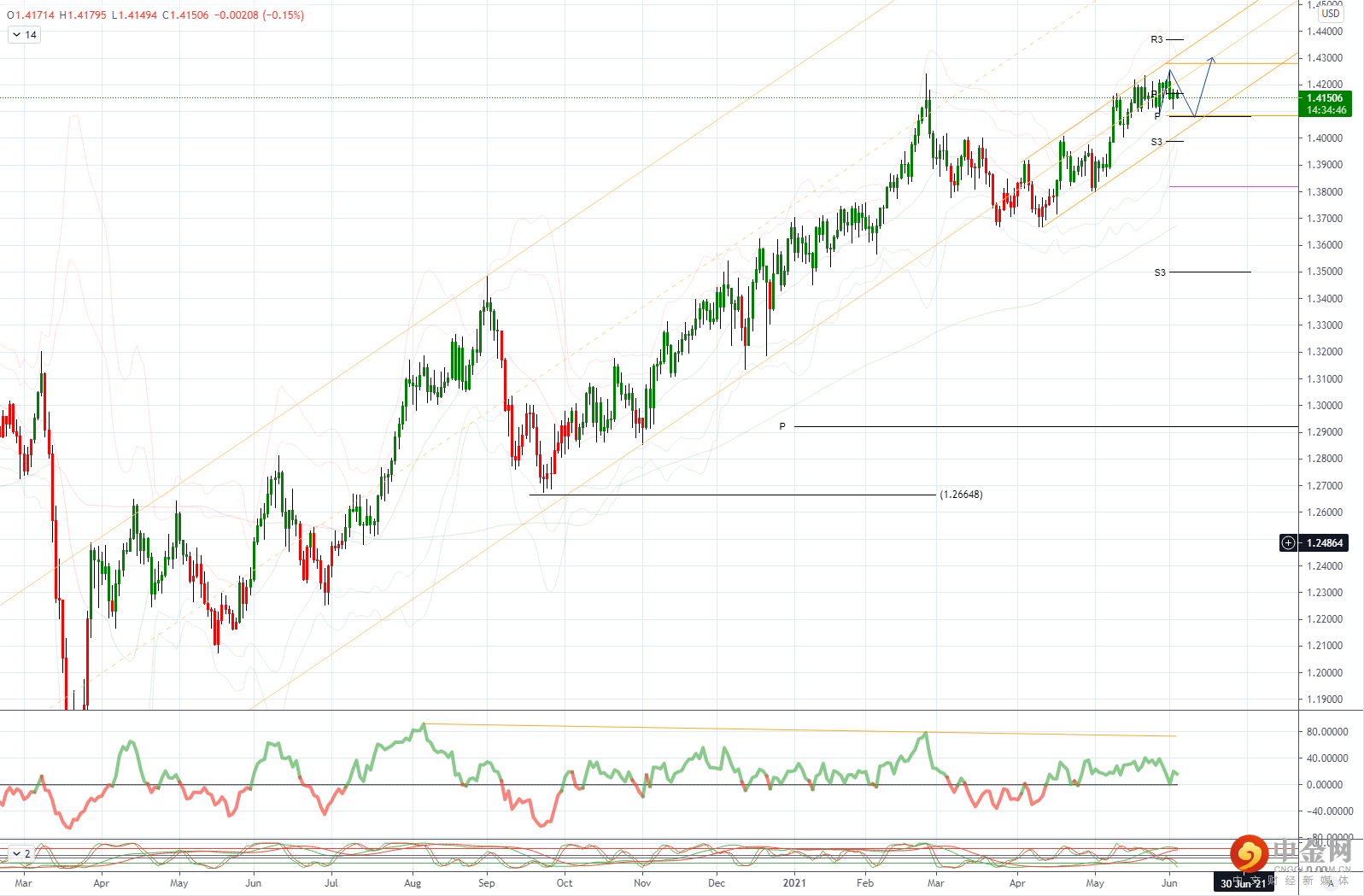 GBPUSD 日内偏差:看涨高于 1.41 看跌低于