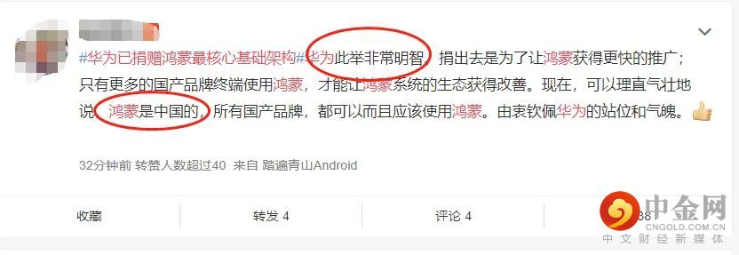 网友纷纷为华为点赞,有网友表示,现在可以理直气壮地说鸿蒙是中国的。