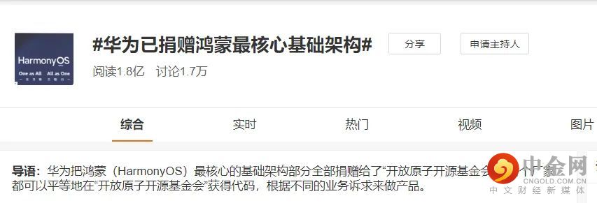 6月6日下午,“华为已捐献鸿蒙全部基础能力”这则消息登上微博热搜。