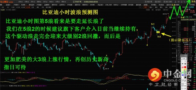 比亚迪小时图第5浪看来是要走延长浪了,我们在5浪2的时候建议旗下客户介入目前当继续持有,这个驱动浪走完会迎来大级别2浪回撤,而后是更加肥美的大3浪上涨行情,再创历史新高指日可待。