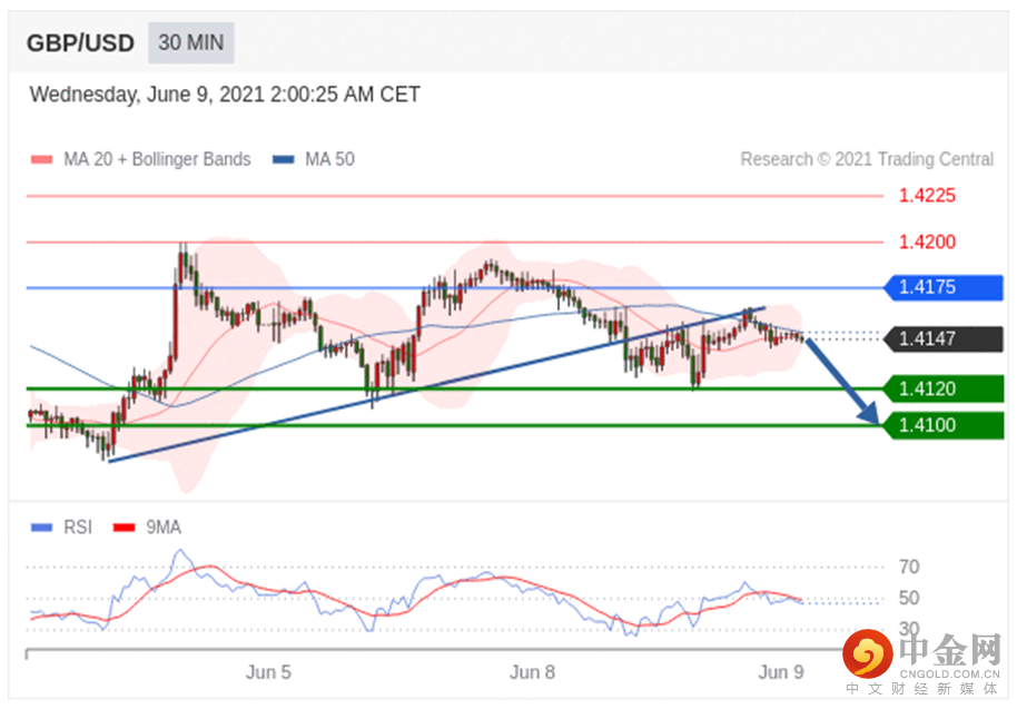 只要1.4175阻力位不被突破,向下跌破1.4120位置的风险很高。