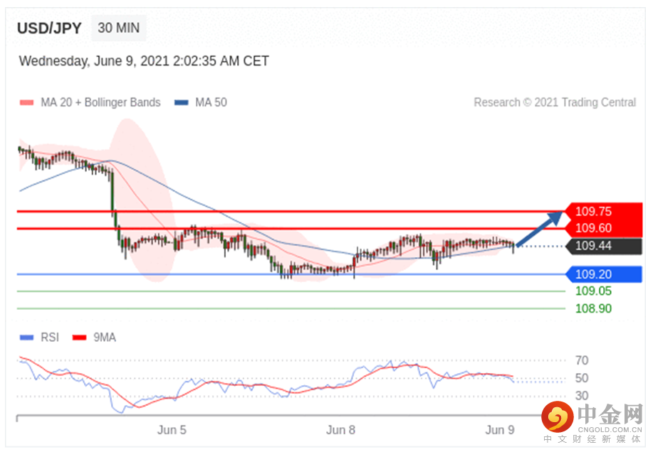 在 109.20 之上,看涨,目标价位为 109.60 ,然后为 109.75 。