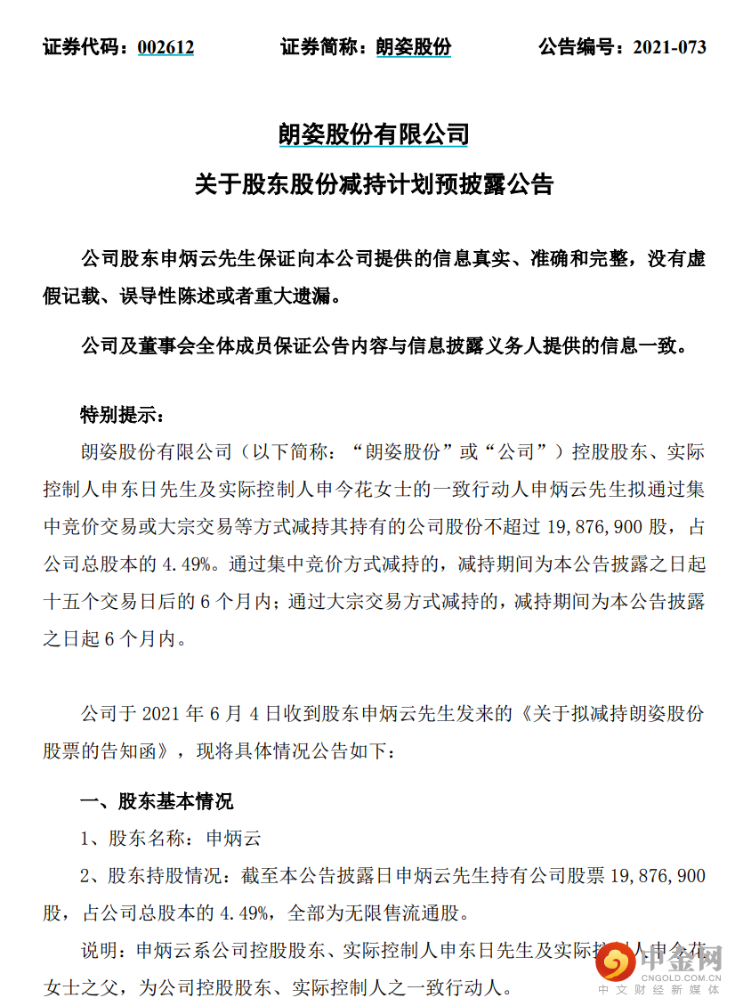 而就在前几日,公司6月4日晚间公告,收到股东申炳云发来的《关于拟减持朗姿股份股票的告知函》,申炳云拟通过集中竞价交易或大宗交易等方式减持其持有的公司股份不超过1987.69万股,占公司总股本的4.49%。