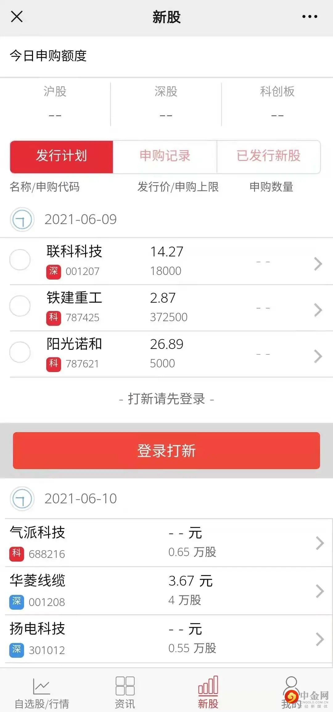 下载国元点金APP,点击【一键打新】