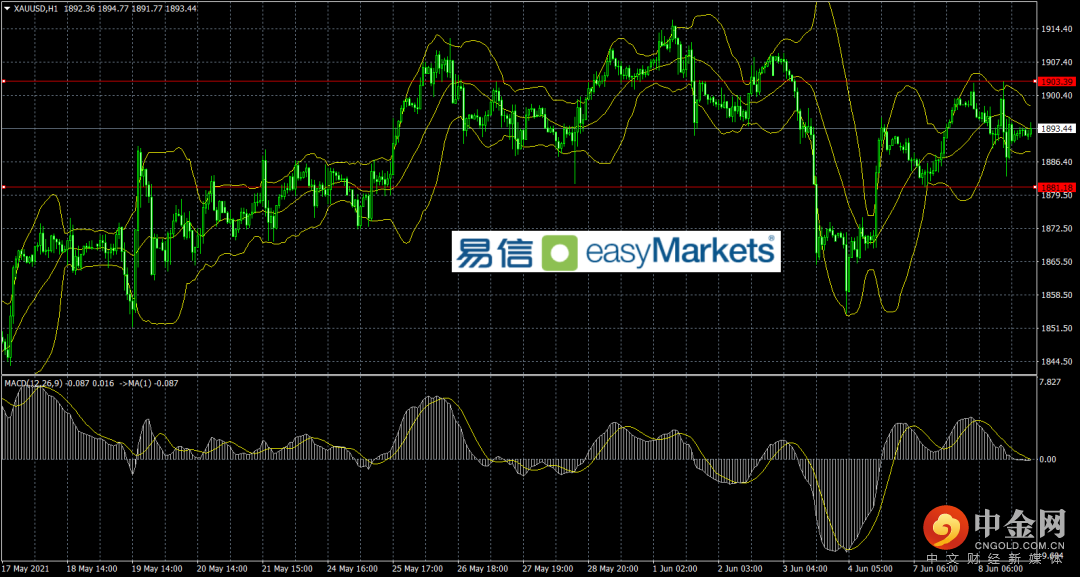 技术上,黄金压力是1900美元附近,突破看1910美元附近,下方支撑是1890美元附近,1881美元附近。指标看,布林线开口横盘,且收口,而MACD指标在0轴附近震荡,短线形态方向不明。交易策略,关注上下方位置重要性,尝试高抛低吸交易,突破则反手追单。