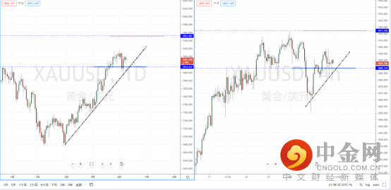 黄金天图:目前整体趋势虽然在多头阶段中,下方有上升趋势线的支撑作用,短期价格在有效测试水平支撑带1874.437附近后,缺乏上升动能。从日内4小时级别,价格有明显的回测状态。可适当关注价格在支撑区间再次测试后期起稳上行的多头机会。