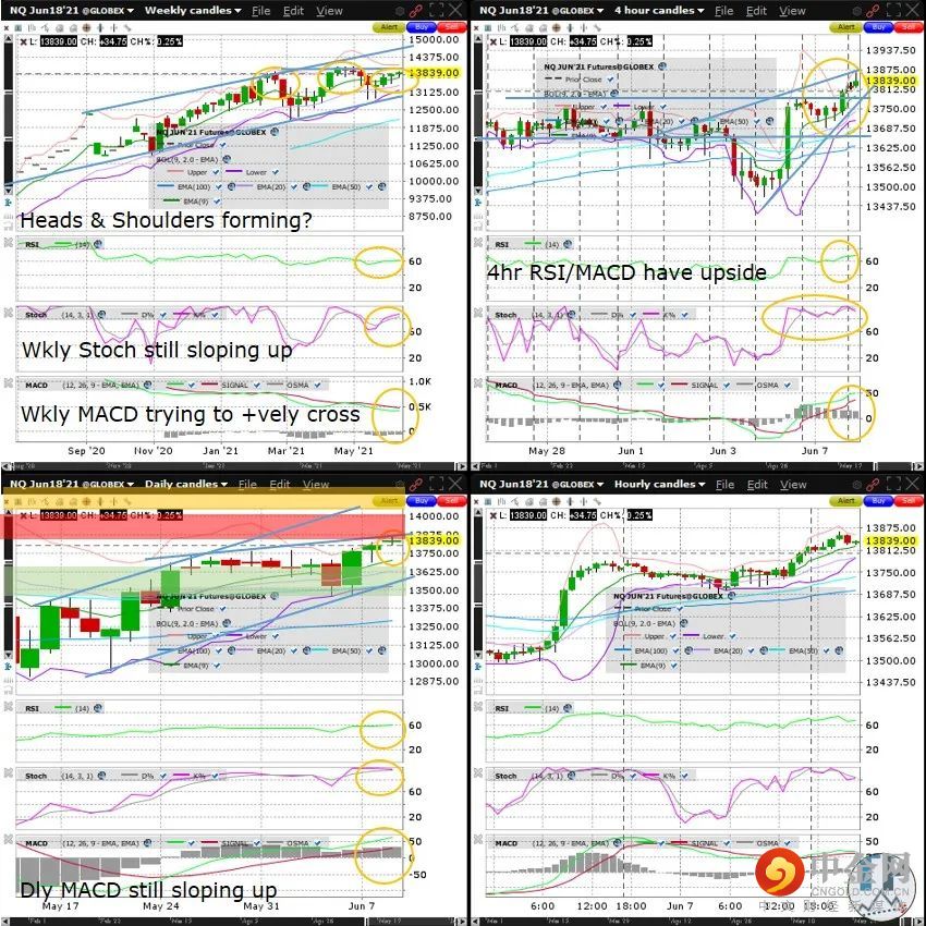 纳斯达克100指数期货(NQ)周线图/日线图/ 4小时图