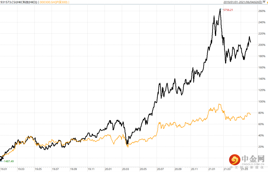 指数表现:自2019-01-01以来,截至2021-06-04,中证港股通科技指数累计涨幅达204.47%,对比沪深300指数涨幅仅为75.45% 。